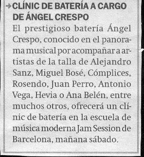 El pasado 14 de Diciembre , Ángel Crespo , uno de nuestros mejores baterías nacionales, ofreció un clínic-masterclass en nuestra escuela de tres horas de duración.