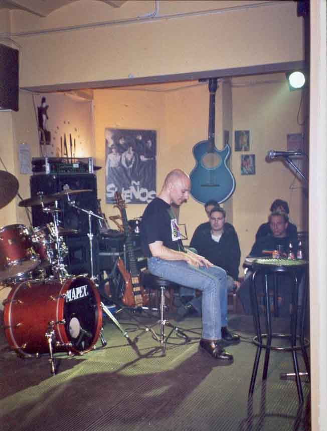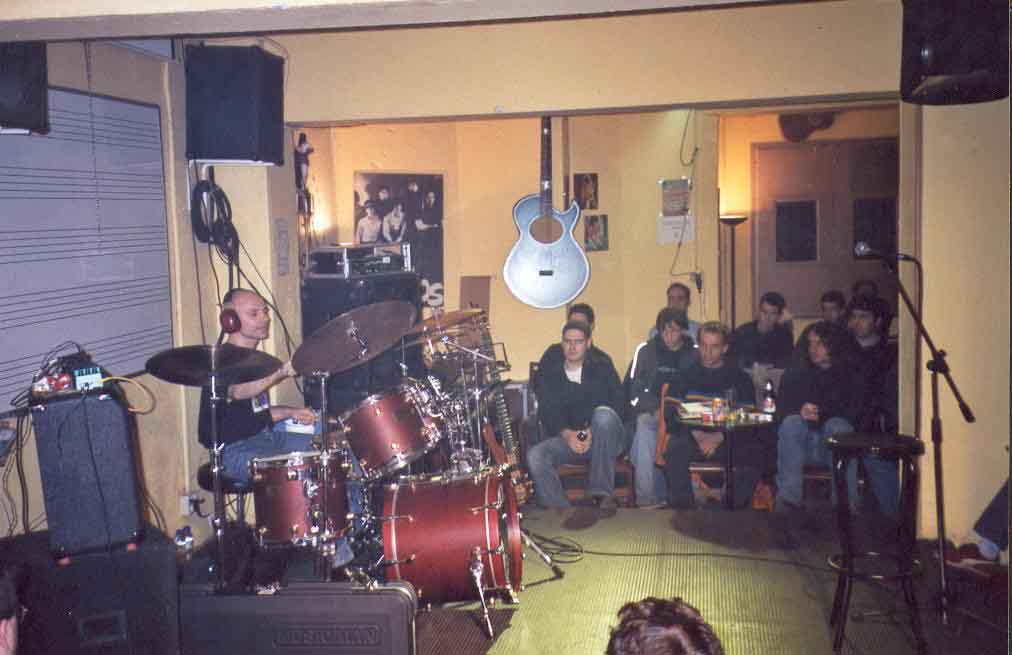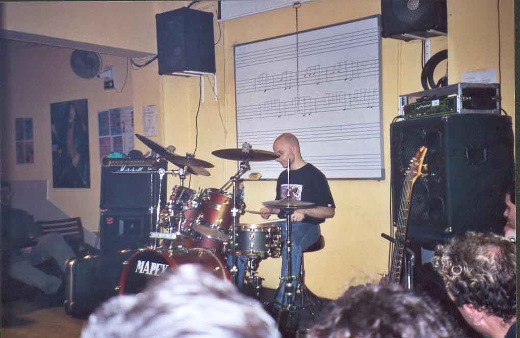Comenzó tocando sobre unas secuencias pregrabadas, que le sirvieron para interpretar técnicas, que al finalizar los temas, explicaba con todo lujo de detalles. Así pudimos observar todo tipo de rudimentos, paradiles, desplazamientos de diferentes figuras, negras, corcheas, semicorcheas..., etc..,tocando después con una caja de ritmos y un metrónomo, donde pudimos observar con más atención , los diferentes desplazamientos de forma reiterada. |