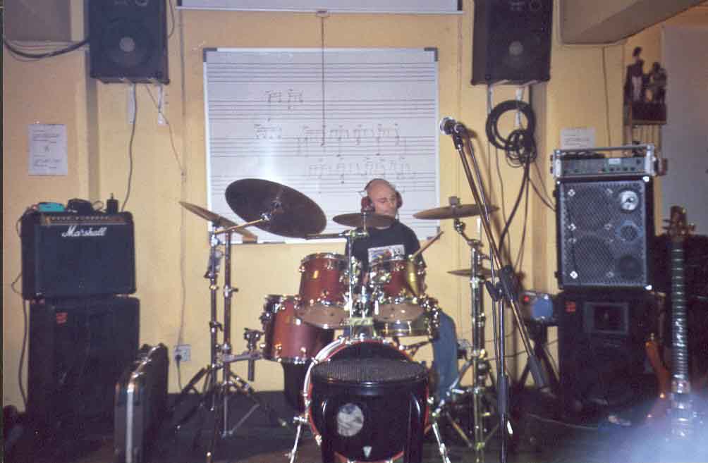 Los que seguimos el clínic , las tres horas se nos pasaron volando. Inició el clínic preguntando a los alumnos si tenían algún interés especial por algún tema. Lo primero de lo que nos habló Ángel fue de la afinación. Siiii , tu..., ese alumno de batería..., “la afinación..", ese gran desconocido. Ángel afina la batería con un metrónomo que le da el A 440 Hz, calculando así, en ésta ocasión en la que estuvo con nosotros, el Do para el primer timbal. Afina sacando los timbales de la batería para no crear confusión por la suma de los armónicos generales, y golpeando cada parche por separado a la altura de cada tensor y ensordeciendo el parche que no afine en ese momento. Curiosamente, por razones de acústica, la nota resultante nos dio Eb, es decir, una tercera menor, b3 y con el mismo procedimiento afinó el resto de la batería en una secuencia de 4ª justas descendentes. ¿Quien dijo que la batería no tiene afinación determinada ?..., quizás la secuencia de armónicos no esté completa como la de un instrumento melódico, pero hay que tenerla en cuenta si vamos a acompañar a otros instrumentos, y por una cuestión de intervalos, entre los diferentes elementos que la batería posee. ¡¡¡ QUE A NADIE SE LE OCURRA AHORA EN EL JAM PREGUNTAR COMO SE AFINA UNA BATERÍA!!! |