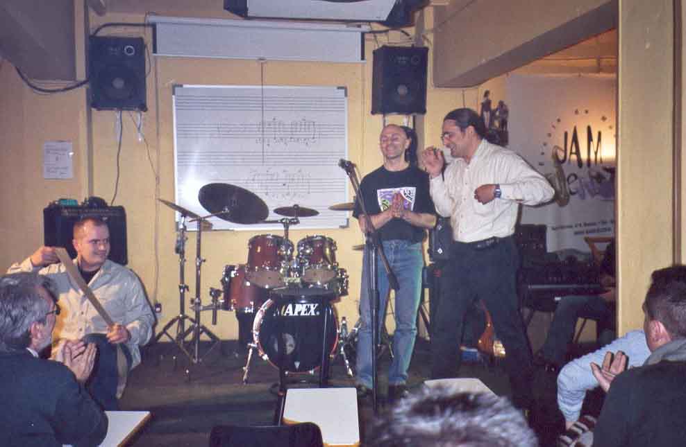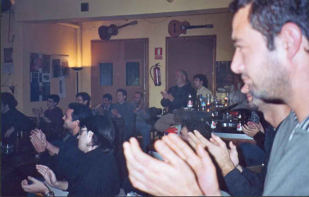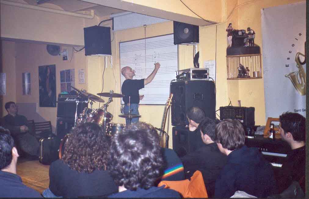 Ángel demostró porqué es uno de los músicos más solicitados en nuestro país. Su maestría y capacidad, nos dejó a todos con un recuerdo que no borraremos jamás. Su sencillez personal y su talento profesional no tiene duda. Para acabar ofreció un leve debate en el que como es costumbre siempre, sale a relucir la pregunta de : "¿Como has conseguido tocar con los más famosos de nuestro país ?", y Ángel respondió como todos los profesores hacemos en ésta escuela, que él solo se preocupa de tocar lo mejor posible y para ello estudia todo lo que puede, o sea, que no es de los que se toman copas por las noches en lugares estratégicos para conseguir trabajos, que algunos pocos esto les funcione, no significa que sea la mejor forma. Ángel está ahí, porque es de los mejores tocando, y lo demostró. Y esto es de lo que nosotros, debemos de aprender. En definitiva, un clínic difícil de superar a todos los niveles. Algunos alumnos comentaron que había sido demasiada materia para ellos, pero vuestros profes cogieron apuntes, así que se os dará poco a poco. Algunas de las cosas que explicó, vuestros profesores están hartos de explicarlas también, pero claro..., tiene que venir un profesional reconocido para que os lo creáis. |