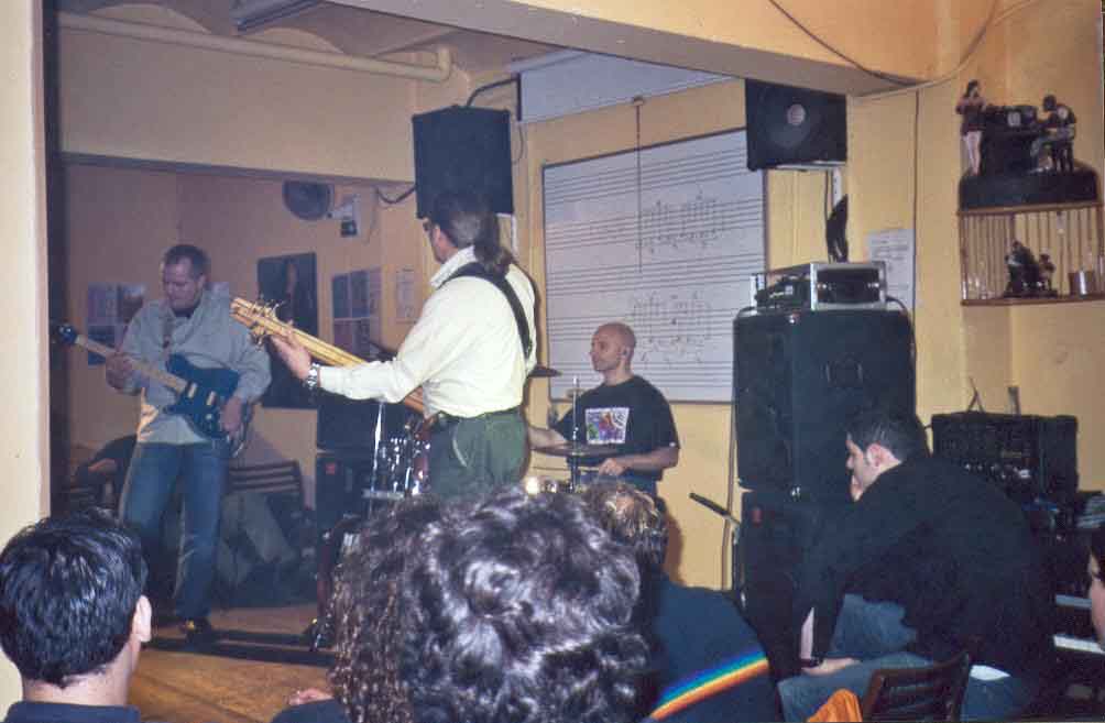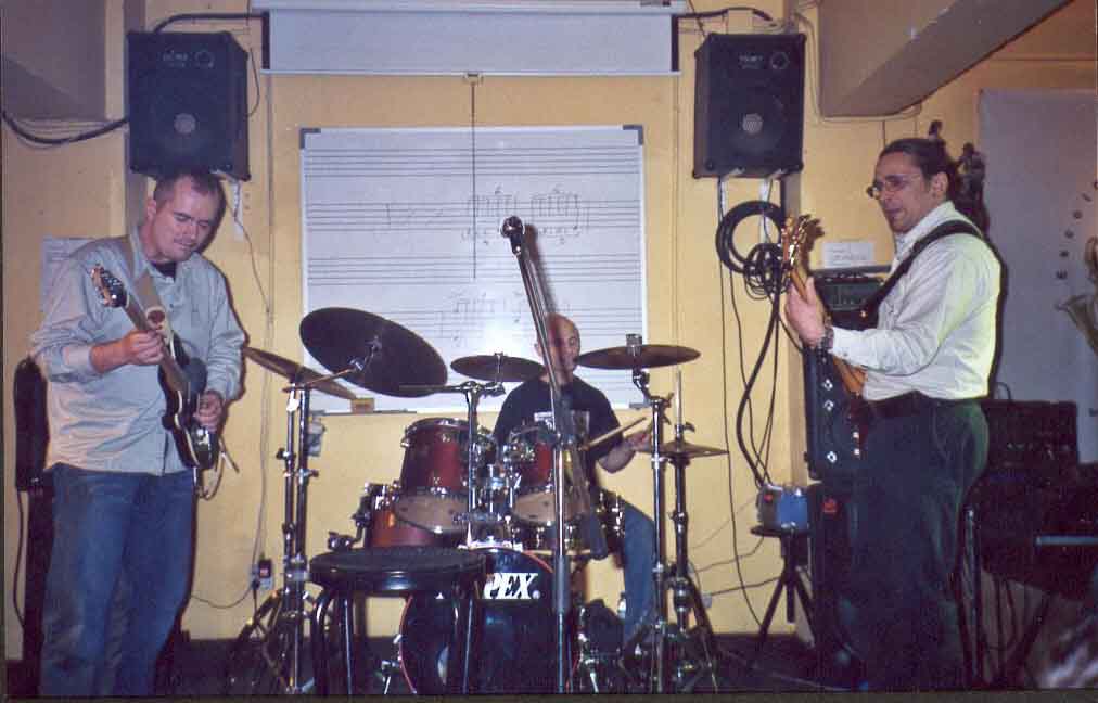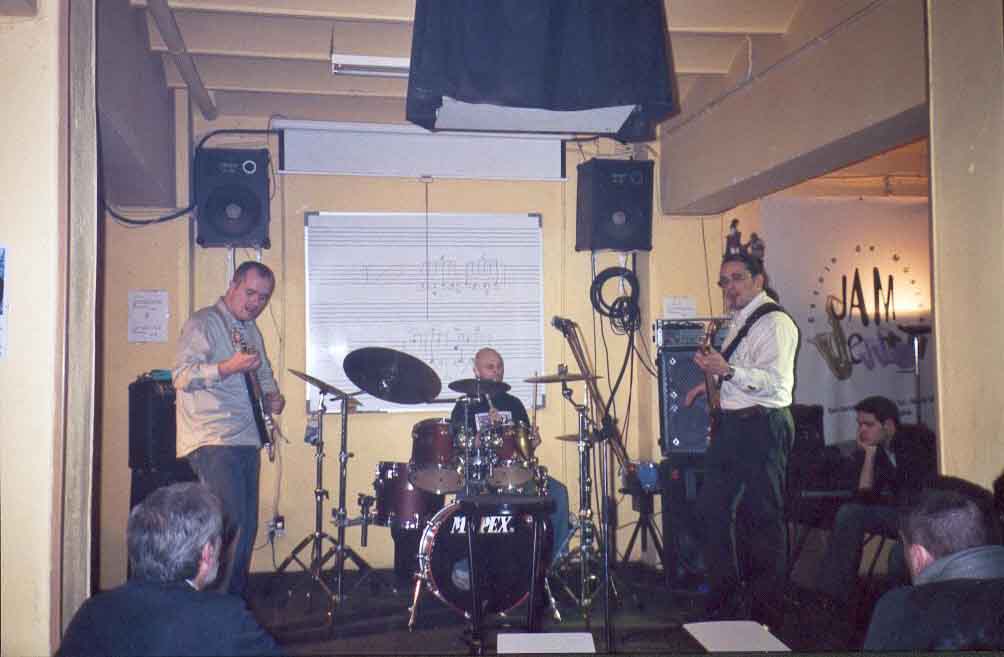 Como norma general de nuestra casa, propusimos a Ángel abandonar las bases pregrabadas y tocar algo en vivo, y haciendo nombre a nuestra escuela JAM SESSION, se organizó una Jam con nuestros profes Carlos Duque al bajo y Miguel Pino a la guitarra, interpretando a trío el tema "The Hong Kong Incident", interpretado originalmente por V. Colauita, R. Ford y J. Haslip, éste último compositor de la obra. Hay que destacar que el tema había sido transcrito por Ángel Crespo, que no solo se transcribió su parte de batería, sino a su vez, escribió el bajo y la guitarra con sus disposiciones correctas para los profes que le acompañaran. Otra lección más para nuestros alumnos..., un profesional no solo conoce su instrumento, sino también el resto..., así Ángel explicó que toca también la guitarra y el piano , y así comprende las funciones que desempeñan los instrumentos a los que acompaña. Es decir , domina por tanto los campos melódicos y armónicos de la música a pesar de ser un músico cuyo instrumento esté ubicado en la sección rítmica de una banda. POR TANTO Y QUE KEDE CLARO..., LOS PROFES NO QUEREMOS VOLVER A OÍR DE UN ALUMNO DE BATERÍA Y PERCUSIÓN, LA PREGUNTA... “¿PARA QUE SIRVE ESTUDIAR SOLFEO, ARMONÍA E INSTRUMENTO COMPLEMENTARIO, SI YO SOY BATERÍA...? " O ALGUNO DE NOSOTROS PERDERÁ LOS NERVIOS...!!! |