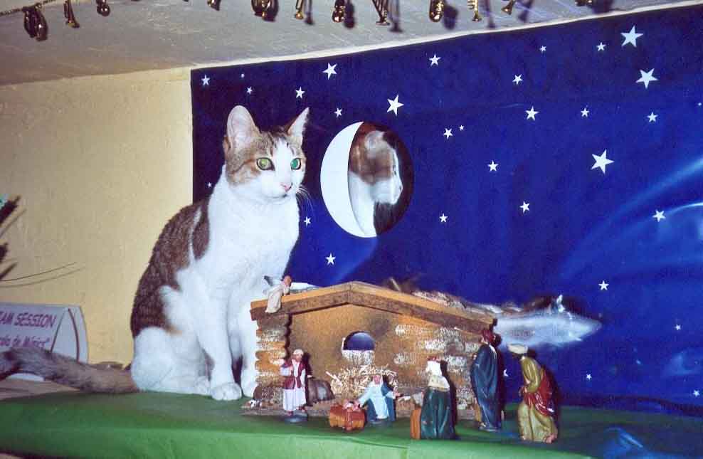 Como siempre nuestra querida gatita Gressy, no se pierde ningún clínic, y estuvo atenta todo el tiempo. Si alguien en ésta escuela escucha música es ella. Parece que el clínic la encantó, y aprovechó el " Belén " de Navidad que ese día, se estrenaba, como lugar estratégico para observar la master-class y posar junto a las figuras. |