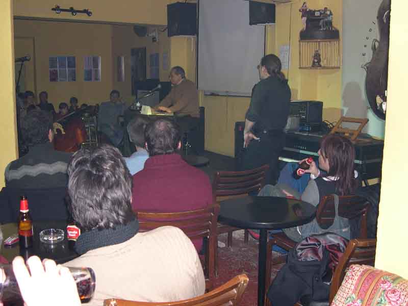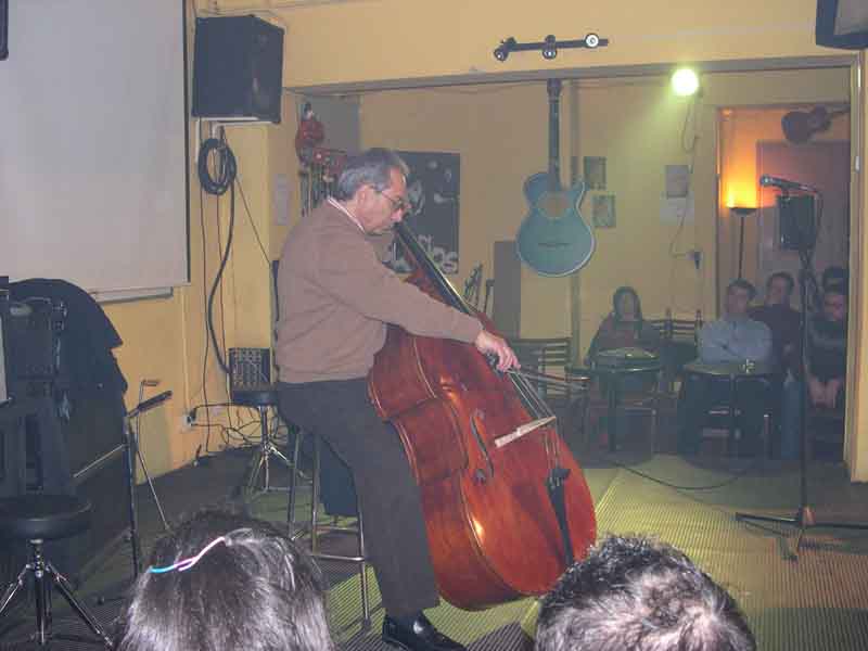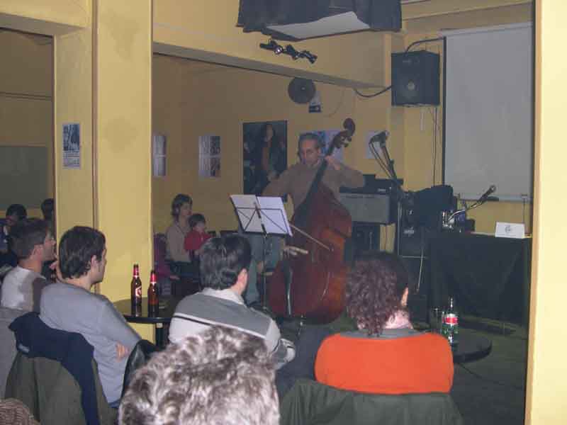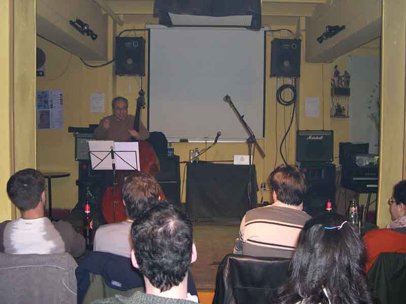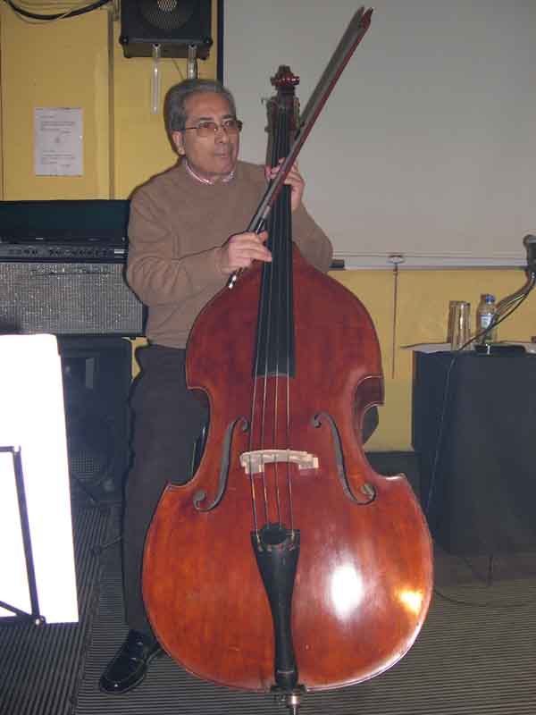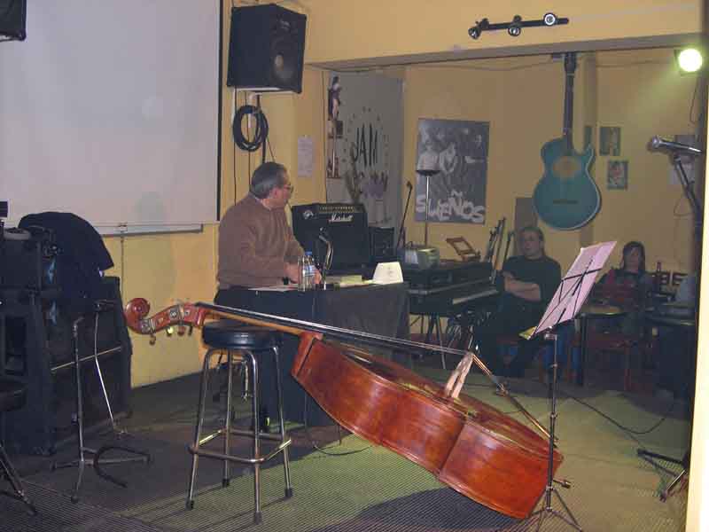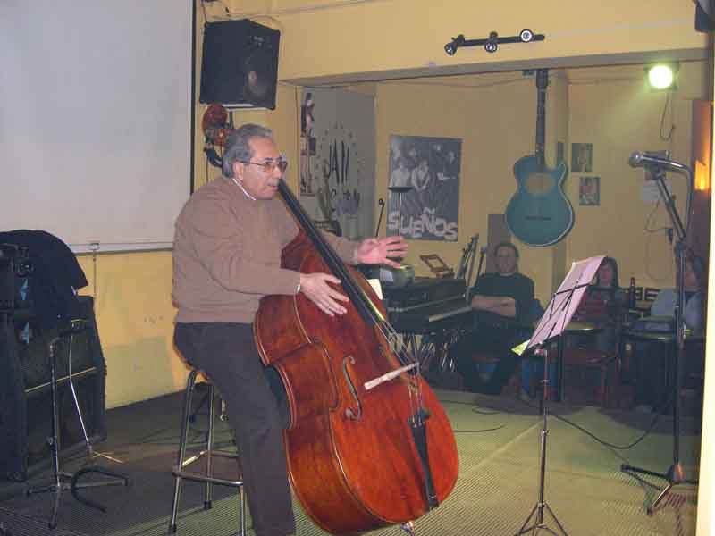 EN LA 1° FOTO RAFAEL DE LA VEGA AL CONTRABAJO EN EL AUDITORIO DE JAM SESSION,