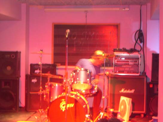 Colocó el pedal en el extremo contario del bombo, para que todo el mundo viera de cara al parche frontal, lo que iba a enseñar.